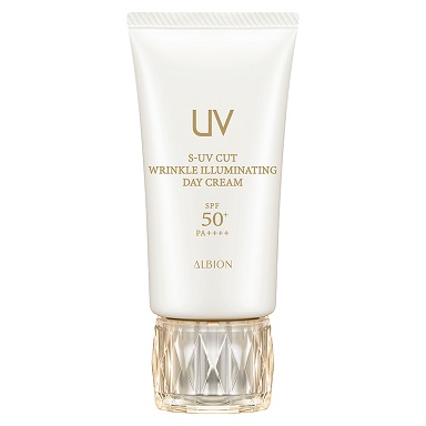 5代目 リニューアルとなるアルビオン最高峰デイクリーム日中の花粉ほこり、ブルーライトのカットはもちろん頼もしい2種の有効成分も加わり、今まで以上に美白、シワ改善の効果が! UVケアの域を超え、美を育む日焼け止めクリーム明るくつやのある弾むようなハリ肌へ導きます アルビオン S-UVカットリンクル イルミネイティング デイクリーム〈日中用美容クリーム・メイクアップベース〉